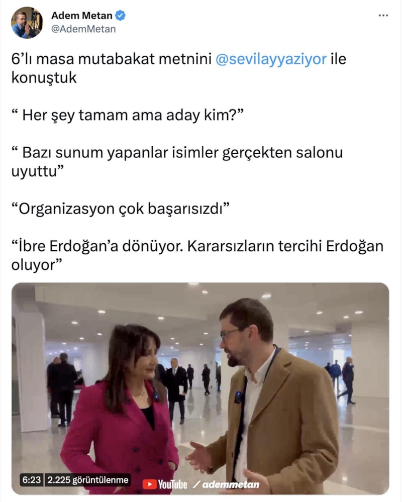 Toplantıyı yakından takip eden dijital yayıncı Adem Metan, 6'lı masanın metnini gazeteci Sevilay Yılman ile konuştu.