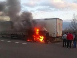 Seyir halindeki tırın dorsesi alev alev yandı VİDEO