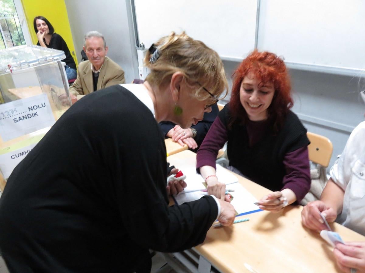 Oy kullandıktan sonra mührü elinde unuttan Aksu, görevlinin uyarısıyla teslim etti.