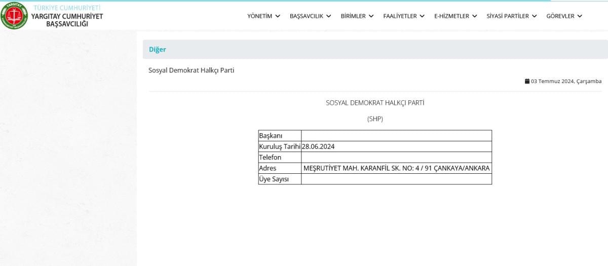 Yargıtay Cumhuriyet Başsavcılığı’nın resmi internet sitesinde yer alan bilgiye göre parti, 28 Haziran 2024 tarihiyle itibarıyla yeniden kuruldu.