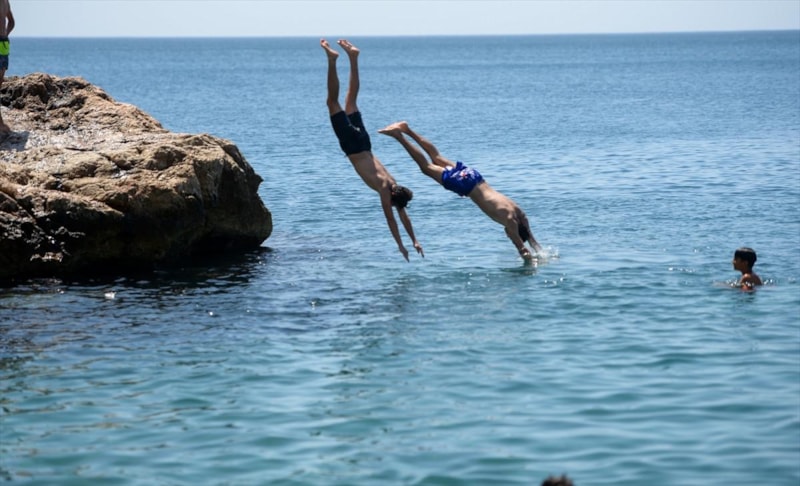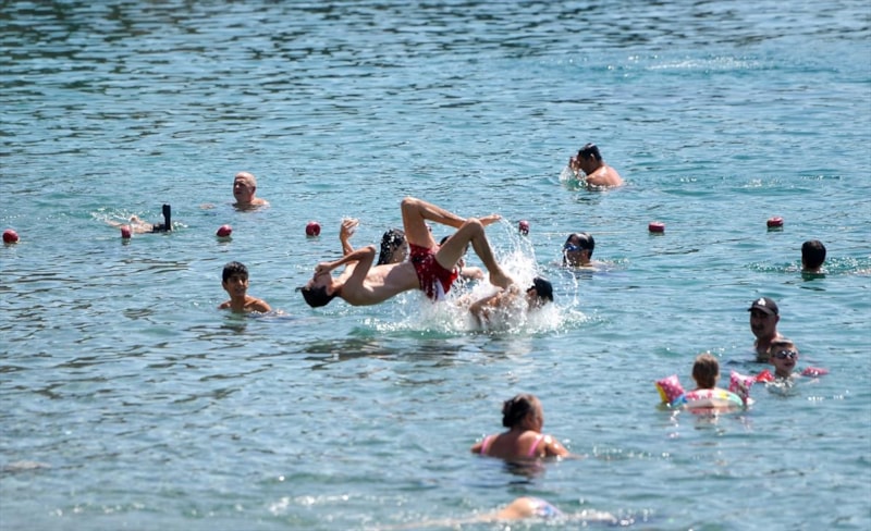 Son dönemlerin en sıcak yaz ayı yaşanırken, vatandaşlar kendilerini denize attı.