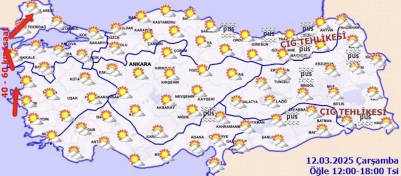 Marmara'da sıcaklık yüksek ama kuvvetli lodos hakim.
