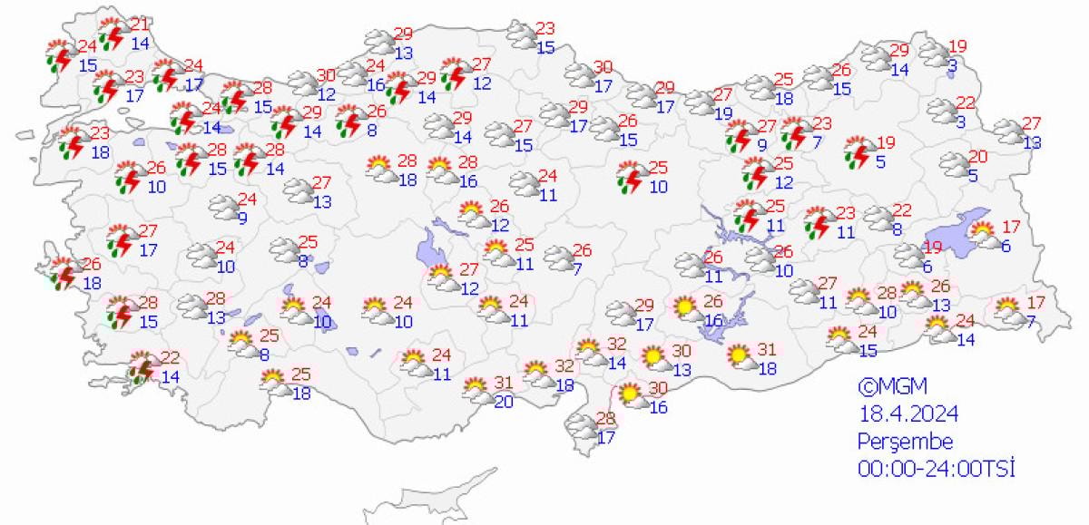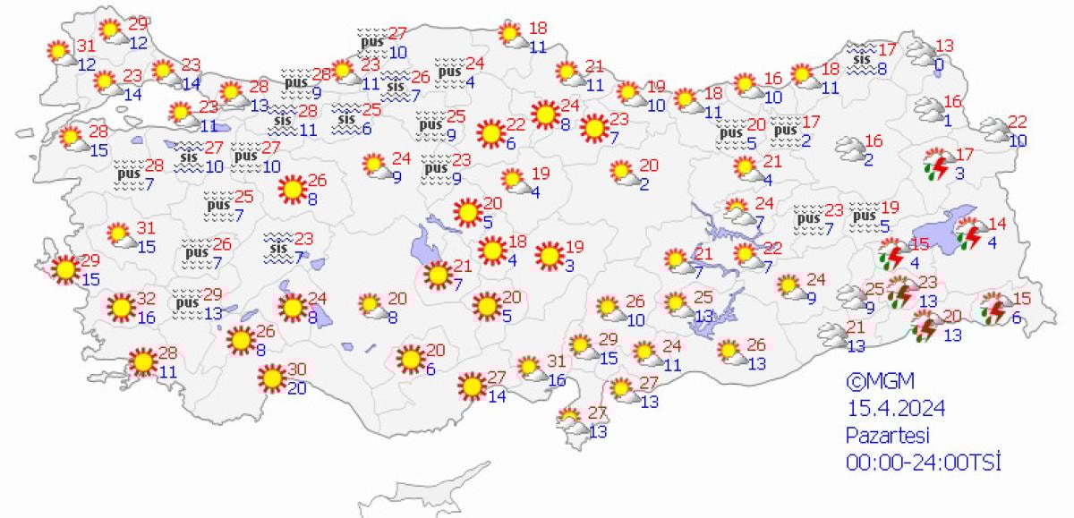 Yerel yağışların görülebileceği Doğu Anadolu için ise çığ tehlikesi bulunuyor.