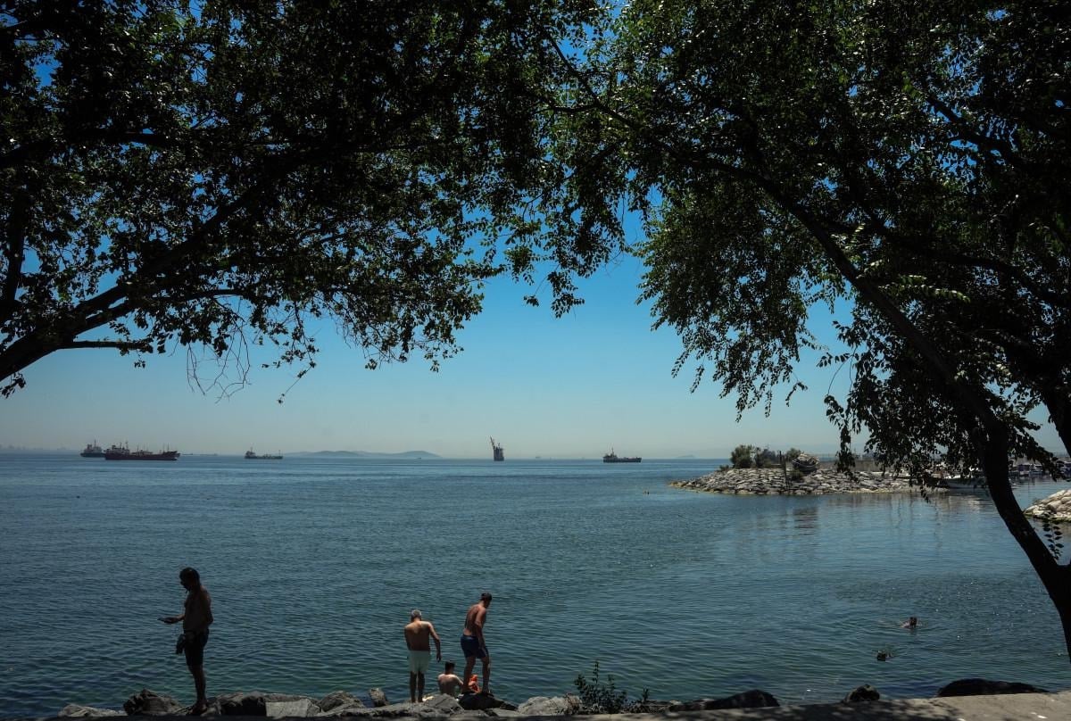 Termometrelerin 39 dereceye ulaştığı megakentte sıcaktan bunalan vatandaşlar serinlemek için deniz kenarlarını tercih etti.