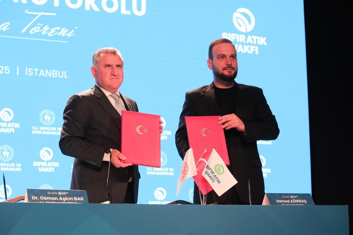 Ataköy Uluslararası Gençlik Merkezi'nde düzenlenen imza törenine Sıfır Atık Vakfı Başkanı Samed Ağırbaş ile Gençlik ve Spor Bakanı Osman Aşkın Bak katıldı.