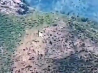 Görüntülerde, Türk askerine karşı alçak bir saldırı hazırlığı yapan teröristlerin SİHA'lar tarafından etkisiz hale getirildiği görülüyor.