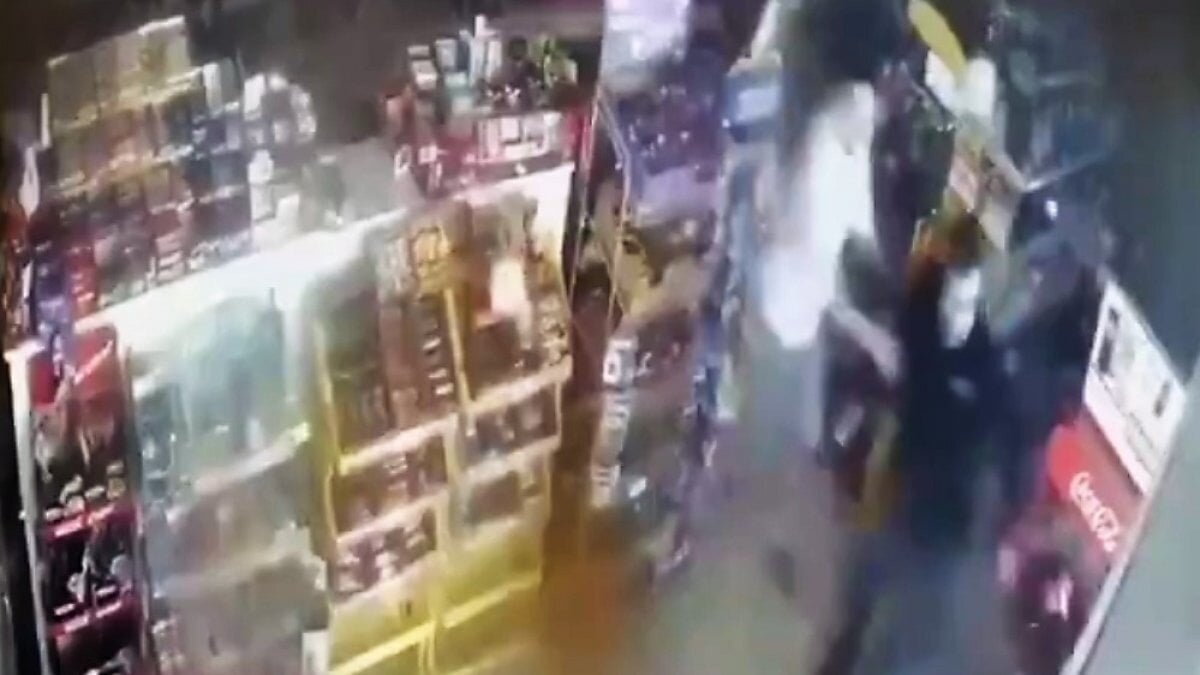 Görüntülerde bir markette bulunanların deprem anında yaşadıkları panik ve kaçış görüntüleri yer aldı.