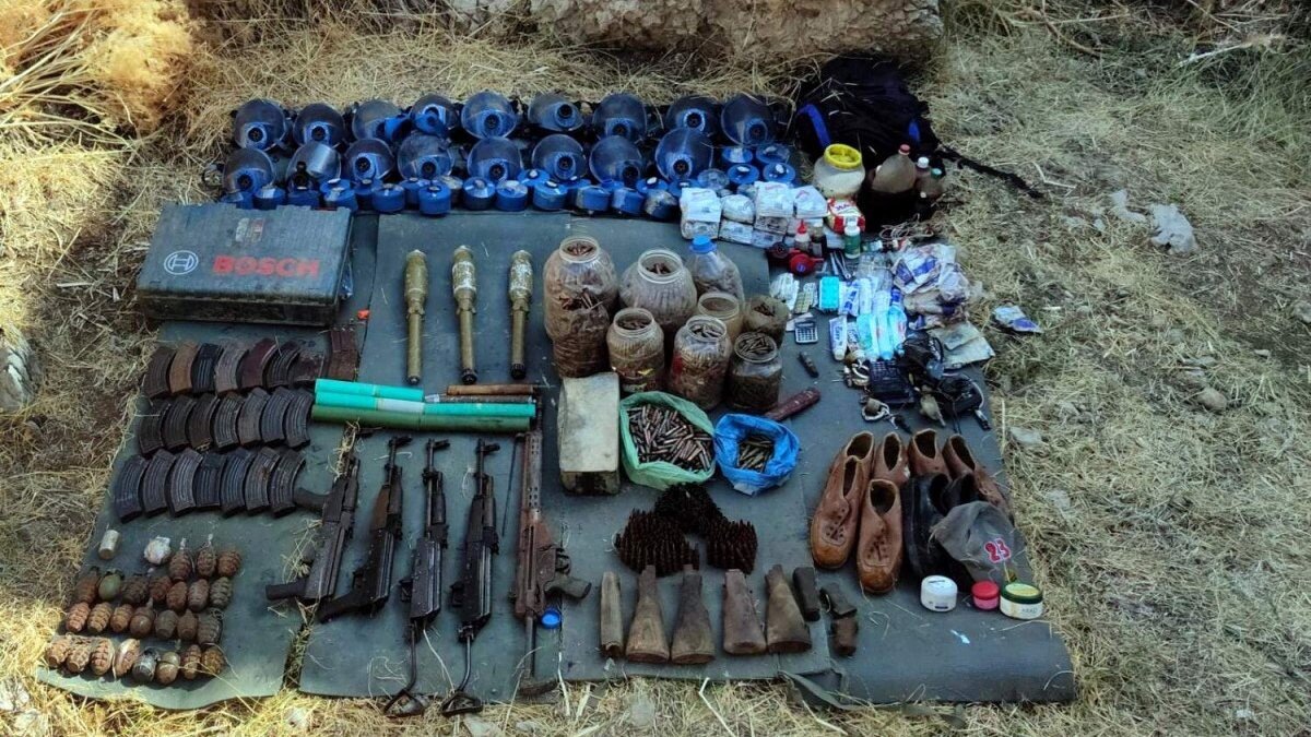 Arazide yapılan aramalarda 5 piyade tüfeği, 3 bin 624 adet piyade tüfeği mermisi, 23 piyade tüfeği şarjörü, 26 el bombası, 4 roketatar mühimmatı, 10 kilogram el yapımı patlayıcı yapımında kullanılan bidon içeresinde patlayıcı madde ile örgütsel doküman ve çok sayıda yaşam malzemesi ele geçirildi.