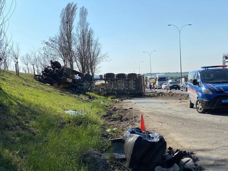 TEM Otoyolu Silivri'de Edirne istikametine doğru ilerleyen hafriyat kamyonu, sürücüsünün kontrolünü kaybetmesi üzerine karşı şeride geçip iki otomobile çarptı.