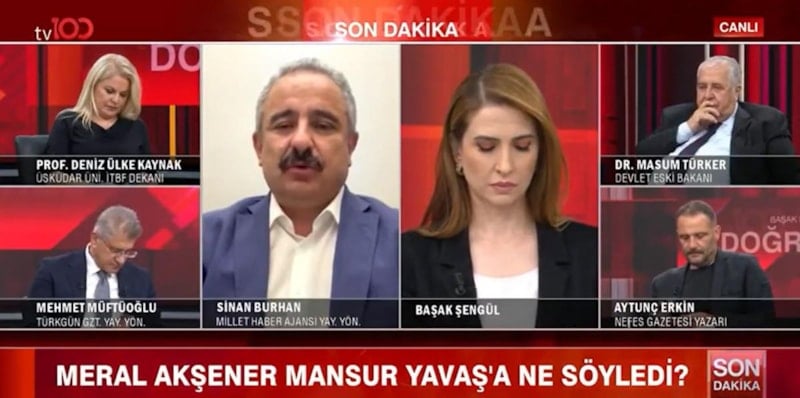 Millet Haber Ajansı Genel Yayın Yönetmeni Sinan Burhan, TV100 canlı yayınında dikkat çeken bir açıklama yaptı. Burhan, “Meral Akşener, Mansur Yavaş’a ‘İyi Parti’yi sana bırakırım, aday ol Mansur Ağabey’ dedi" cümlelerini kurdu.