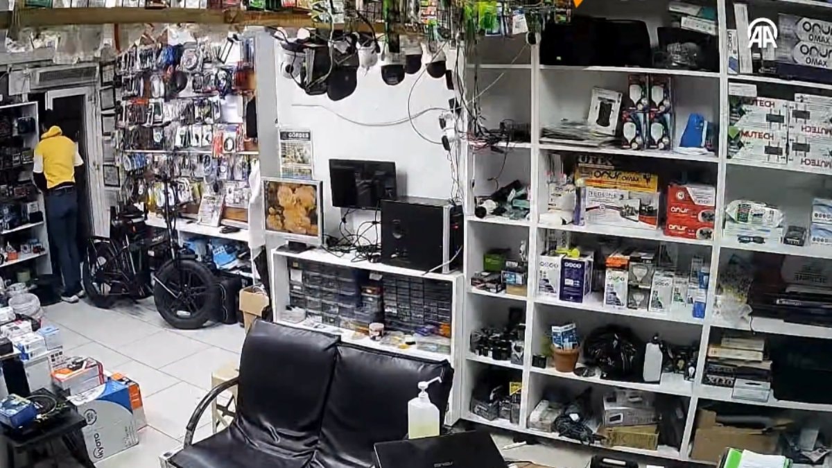 Balıkesir Sındırgı'da meydana gelen 6.1 büyüklüğündeki depreme yakalanan vatandaşların korkuyla kaçıştığı anlar güvenlik kameralarına yansıdı.