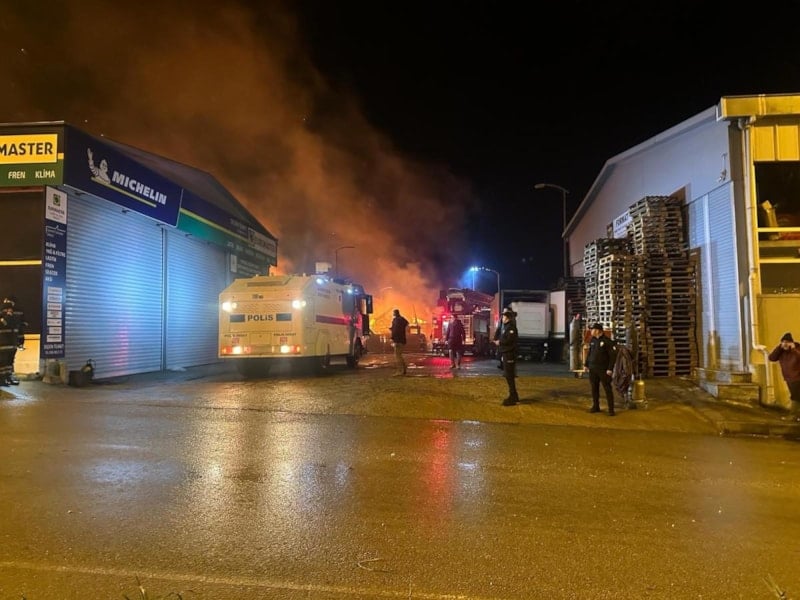 Henüz belirlenemeyen bir sebepten çıkan yangın, rüzgarın da etkisiyle büyüyerek tüm atölyeyi sardı.