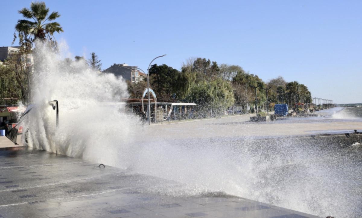 Saatteki hızı 35 kilometreye ulaşan rüzgar kentin sahilinde etkili oldu.