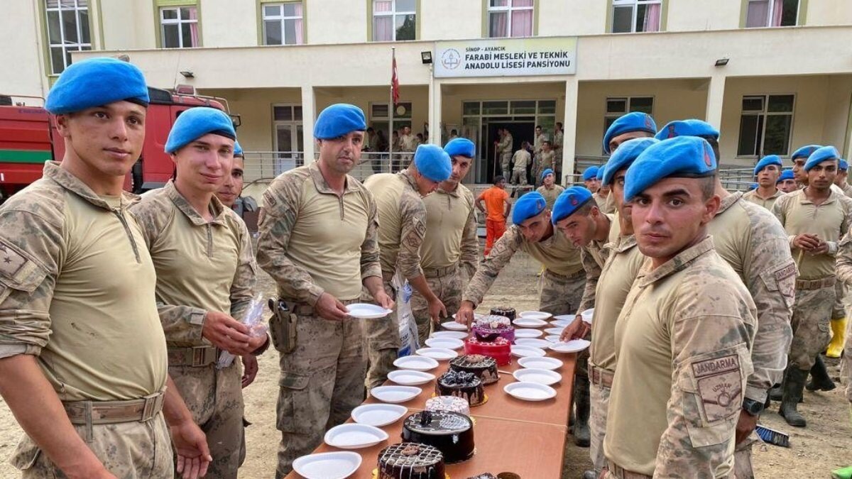 Sel felaketinin yaşandığı Ayancık ilçesinde yaraların sarılmasına destek veren Mehmetçik’e doğum günü sürprizi yapıldı.