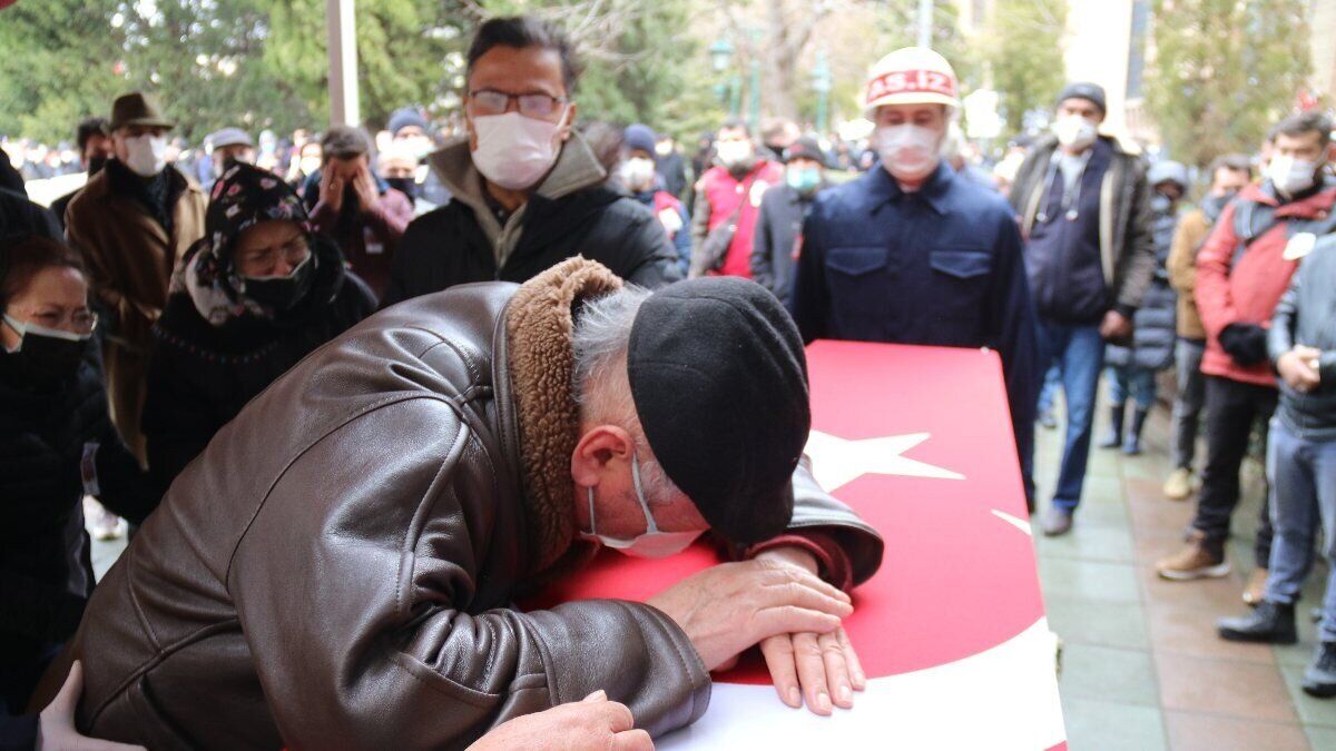 Anne Tarcan da şehit oğlunun tabutuna sarılıp, "Yavrum benim. Ah yavrum benim, nasıl bıraktın bizi?" diyerek gözyaşı döktü.