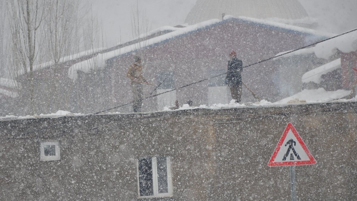 Buz pistine dönen damlarda yarım metrelik kar yığınını kürekle temizleyen köylüler, birikintinin oluşmaması için nöbet tutuyor. İlçeye bağlı Başaran köyünde vatandaşlar, kerpiç evlerin damının çökmemesi ve su damlamaması için yoğun mesai harcıyor.