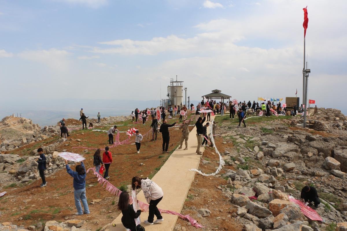 Rüzgarlı havaya rağmen çocuklar zirvede uçurtma uçurmanın heyecanını yaşadı.