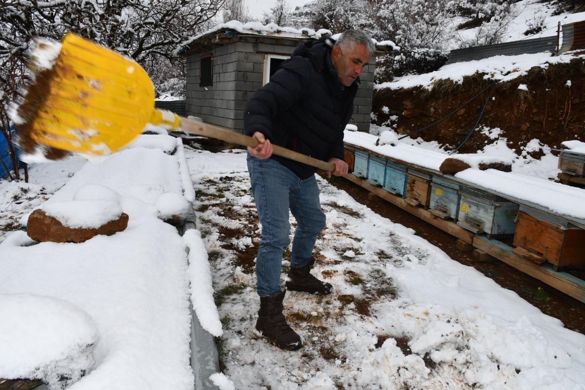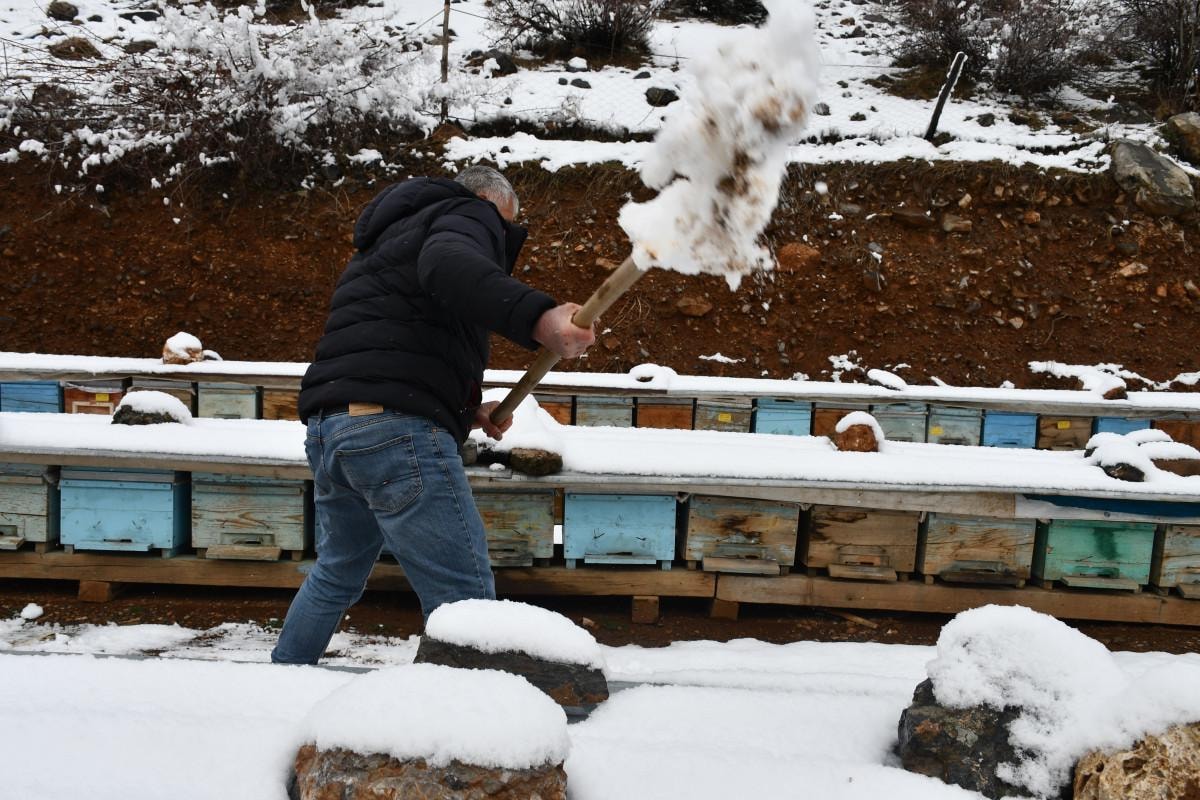 Arıcı Serdar Gökçe her yıl kar temizlediklerini söylerken; "Bu yıl kar geç yağdı. Ancak yılın hangi ayı yağsa biz mecbur arıcılar arı kovanlarının önlerini temizlemek zorundayız. Çünkü telef oluyorlar. Her yıl bu işi yapıyoruz" ifadelerini kullandı.