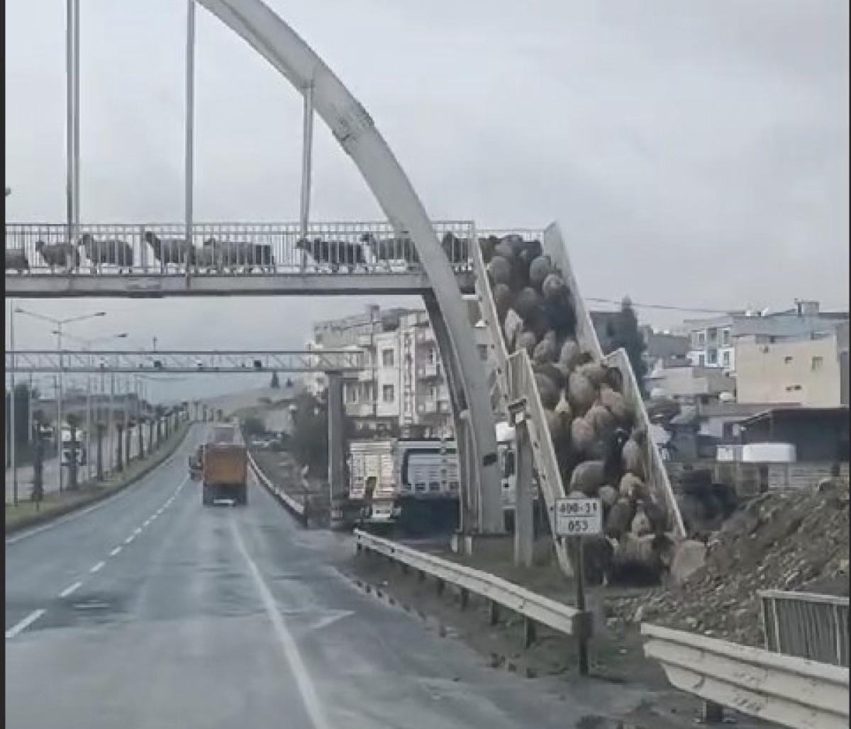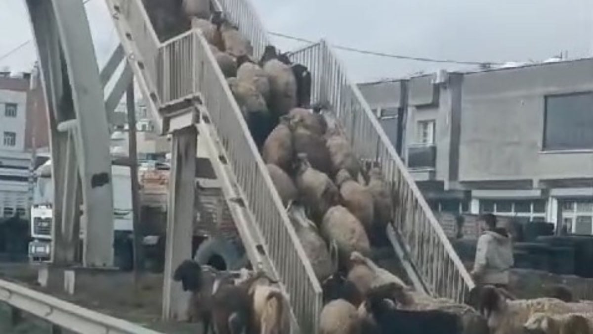 Çevre yolu okullar bölgesinde bulunan üst geçit, bu kez insanlara değil, koyunlara hizmet etti.