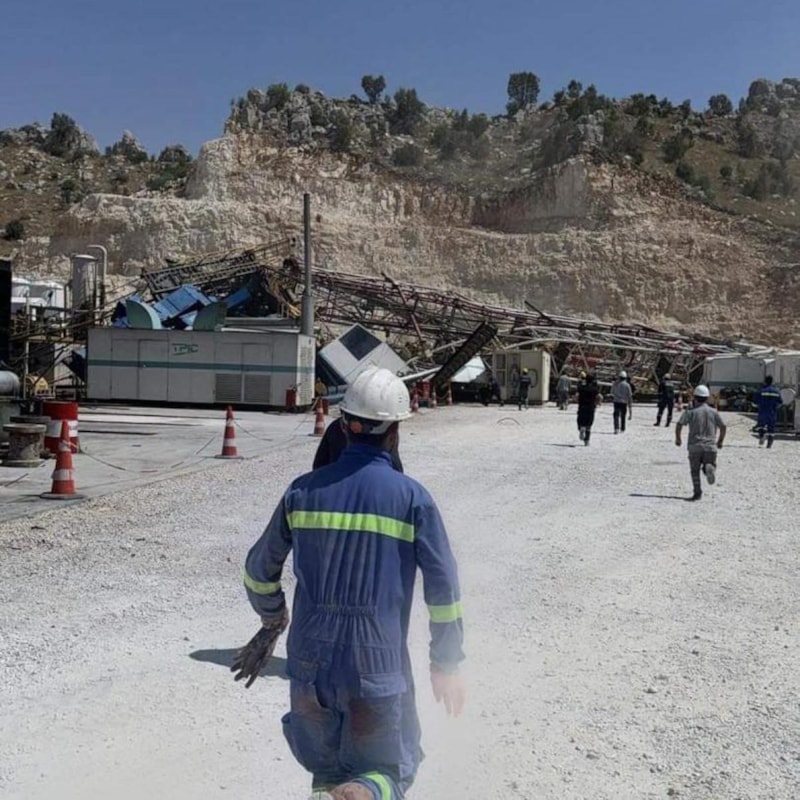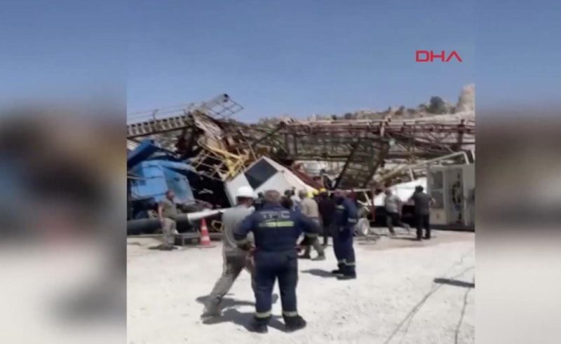 Şırnak’ta sabah saatlerinde Gabar Dağı petrol sahasında çalışma sırasında, TPAO'ya ait sondaj kulesi beton zeminin çökmesi nedeniyle devrildi.