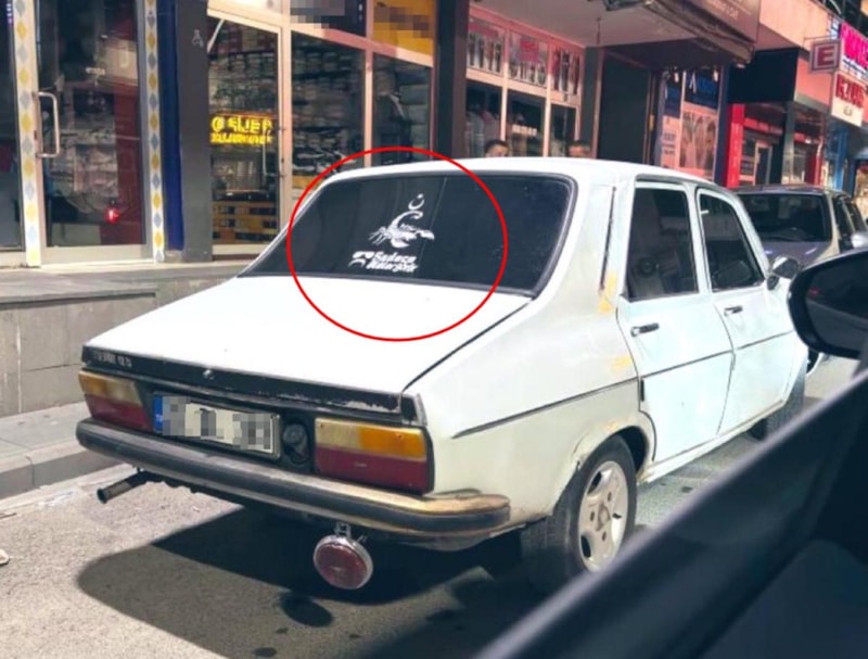 Arka camına JİTEM amblemi ve 'Sadece ölüler görür' yazısı yapıştırılan aracın sahibi tespit edildi.