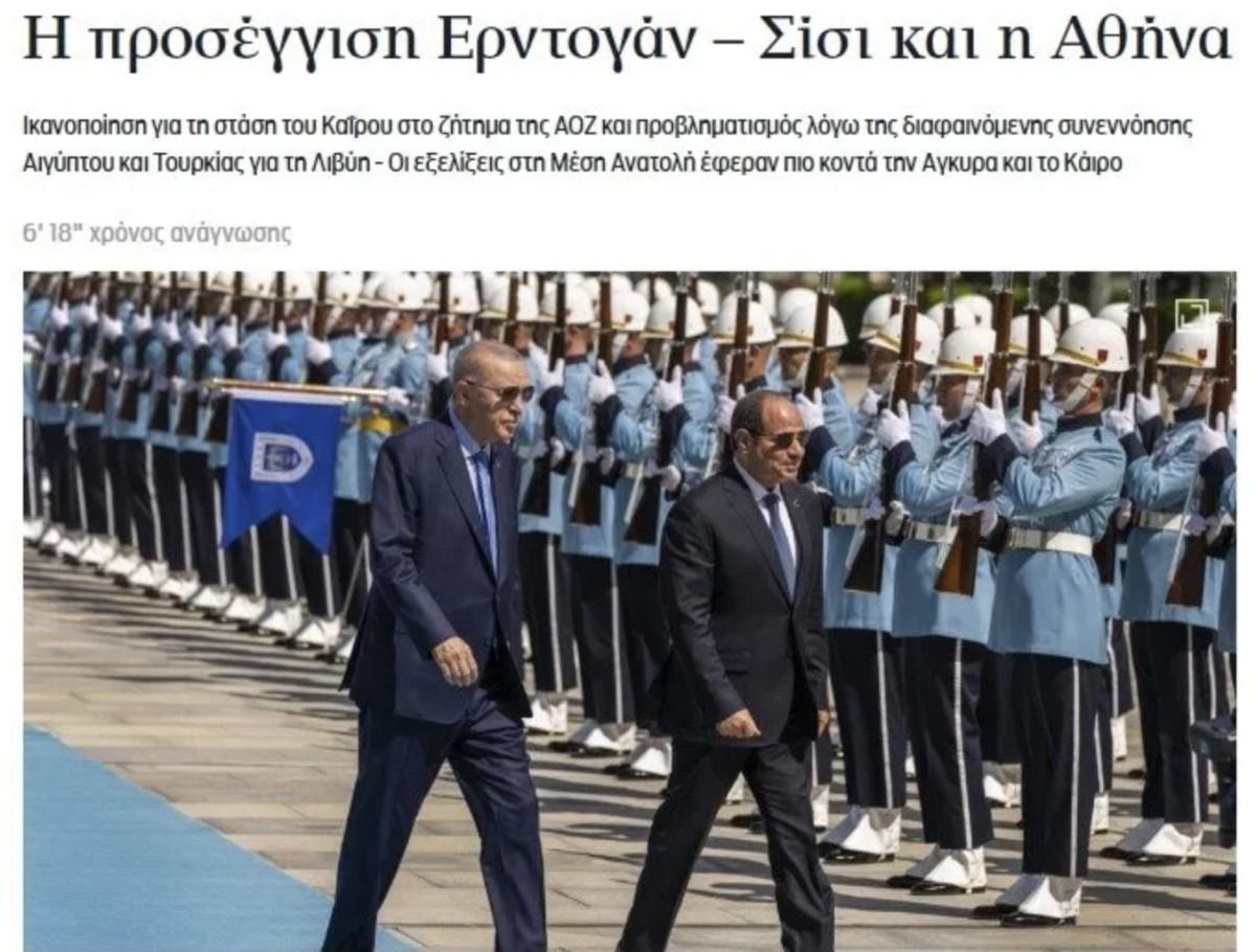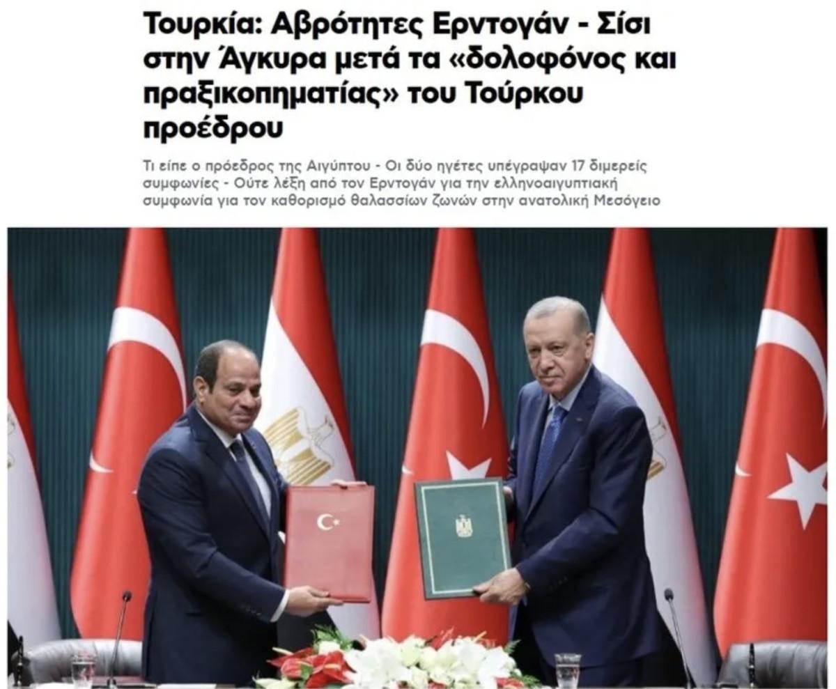 Kathimerini gazetesi, "Erdoğan-Sisi yakınlaşması ve Atina" başlığıyla duyurduğu haberde, Başkan Erdoğan'ın açıklamalarına geniş yer verdi.