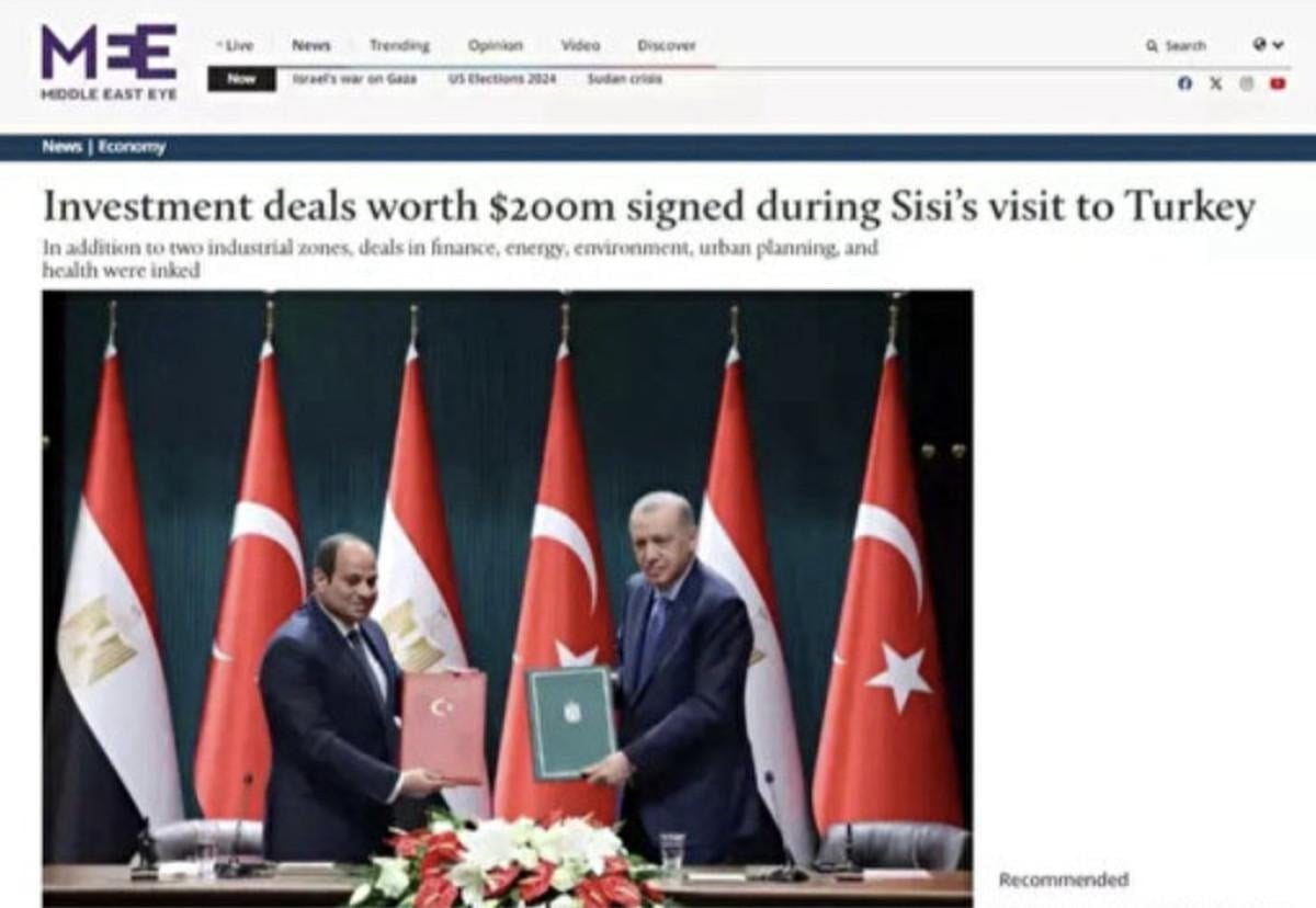 Middle East Eye, Sisi'nin Türkiye ziyaretinde 200 milyon dolarlık yatırım anlaşması imzalandığına dikkat çekti ve "Türkiye Cumhurbaşkanı Recep Tayyip Erdoğan ve Sisi'nin bizzat katıldığı etkinlikte, yıllardır süren anlaşmazlıklar ve bozulan ilişkilerin ardından yeni bir dönemin başlangıcı birlikte kutlandı." ifadelerini kullandı.