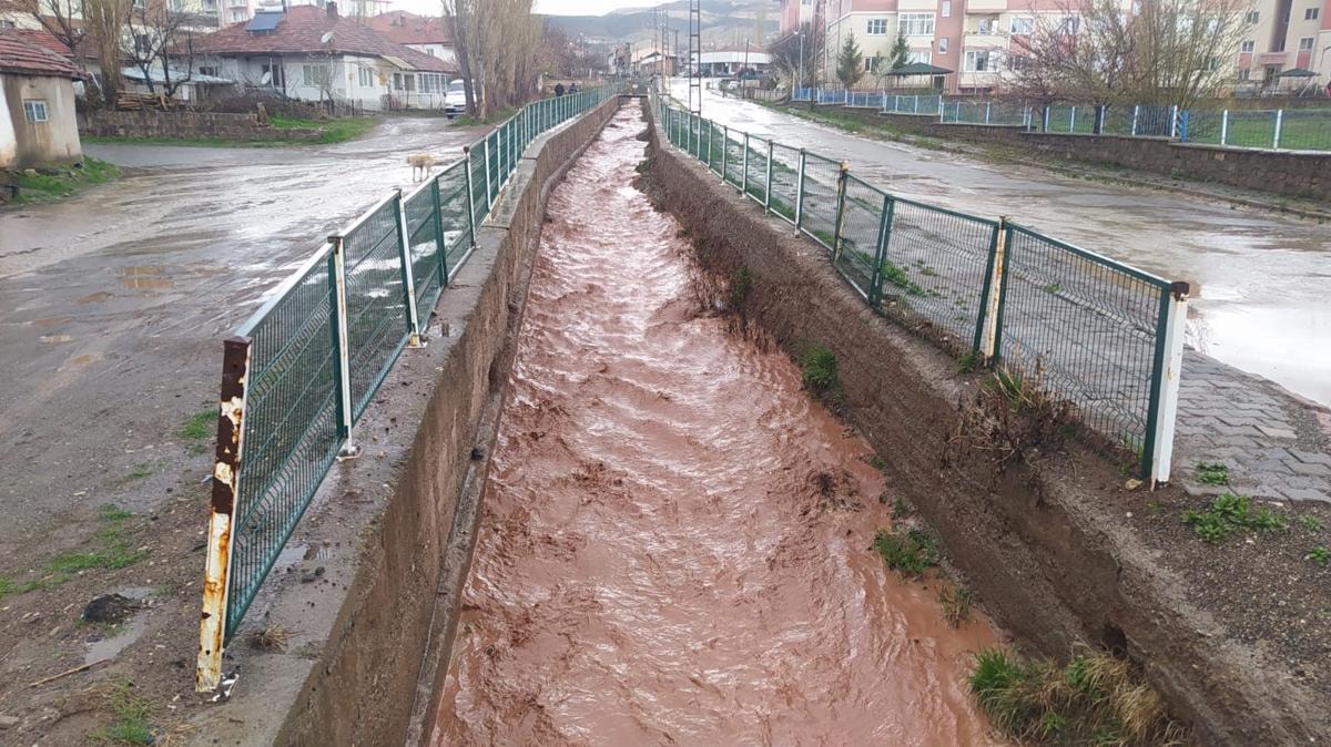 İlçe merkezinde yoğun yağış sonrası yollarda su birikintisi oluştu.