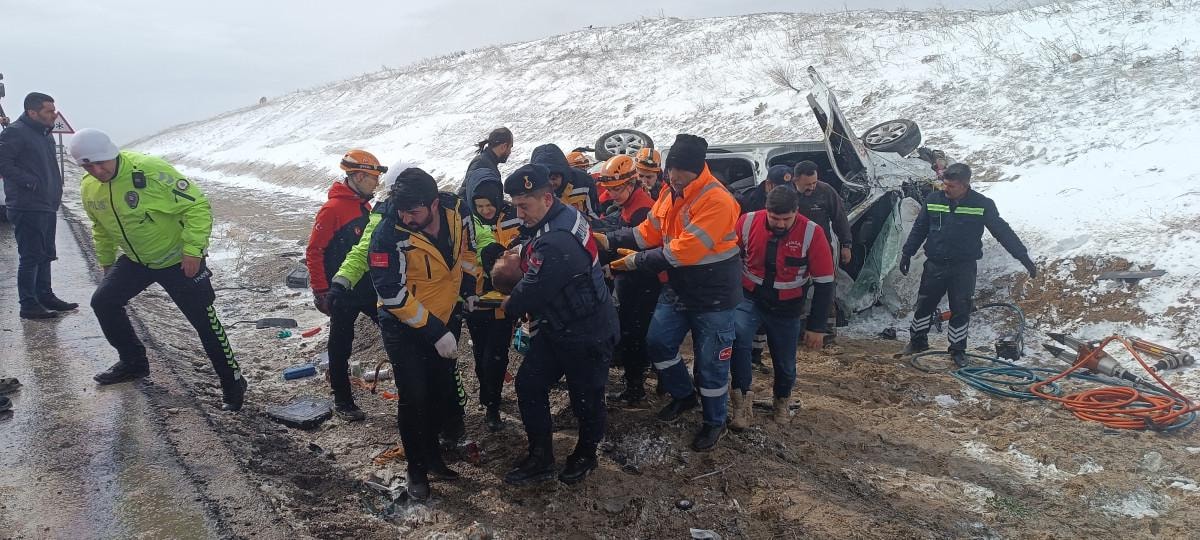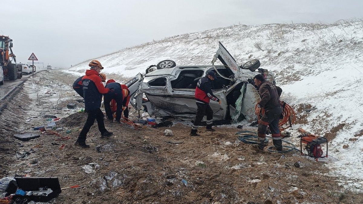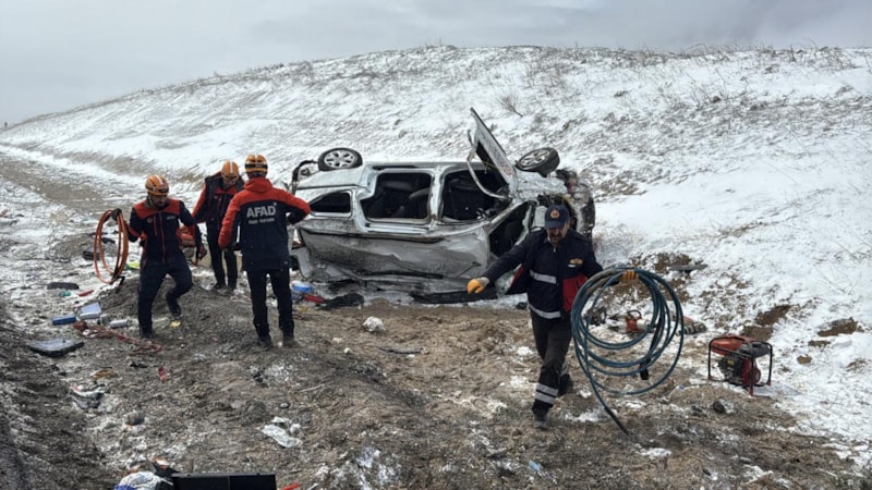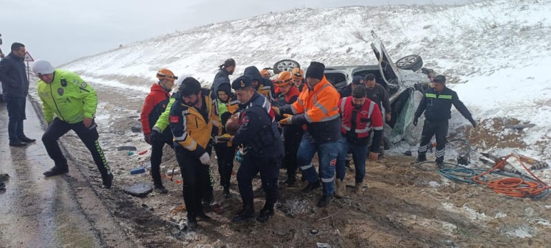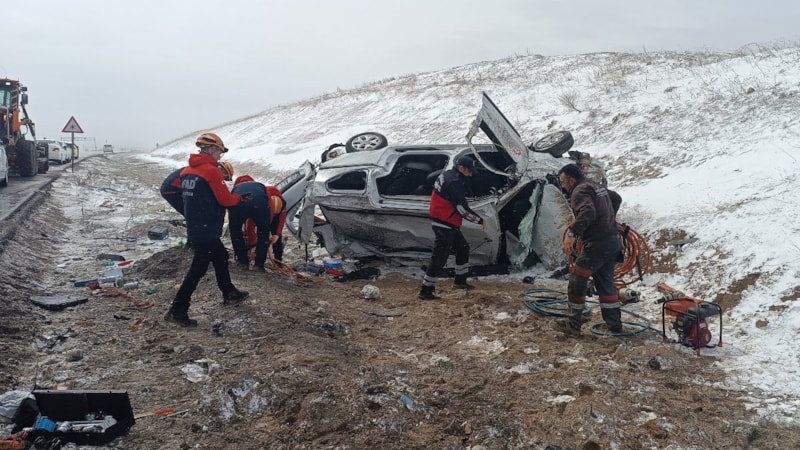 Sivas'ta seyir halindeki aracın sürücüsü Y.S., kaygan yol nedeniyle aşırı hız sonucu yoldan çıkarak takla attı.
