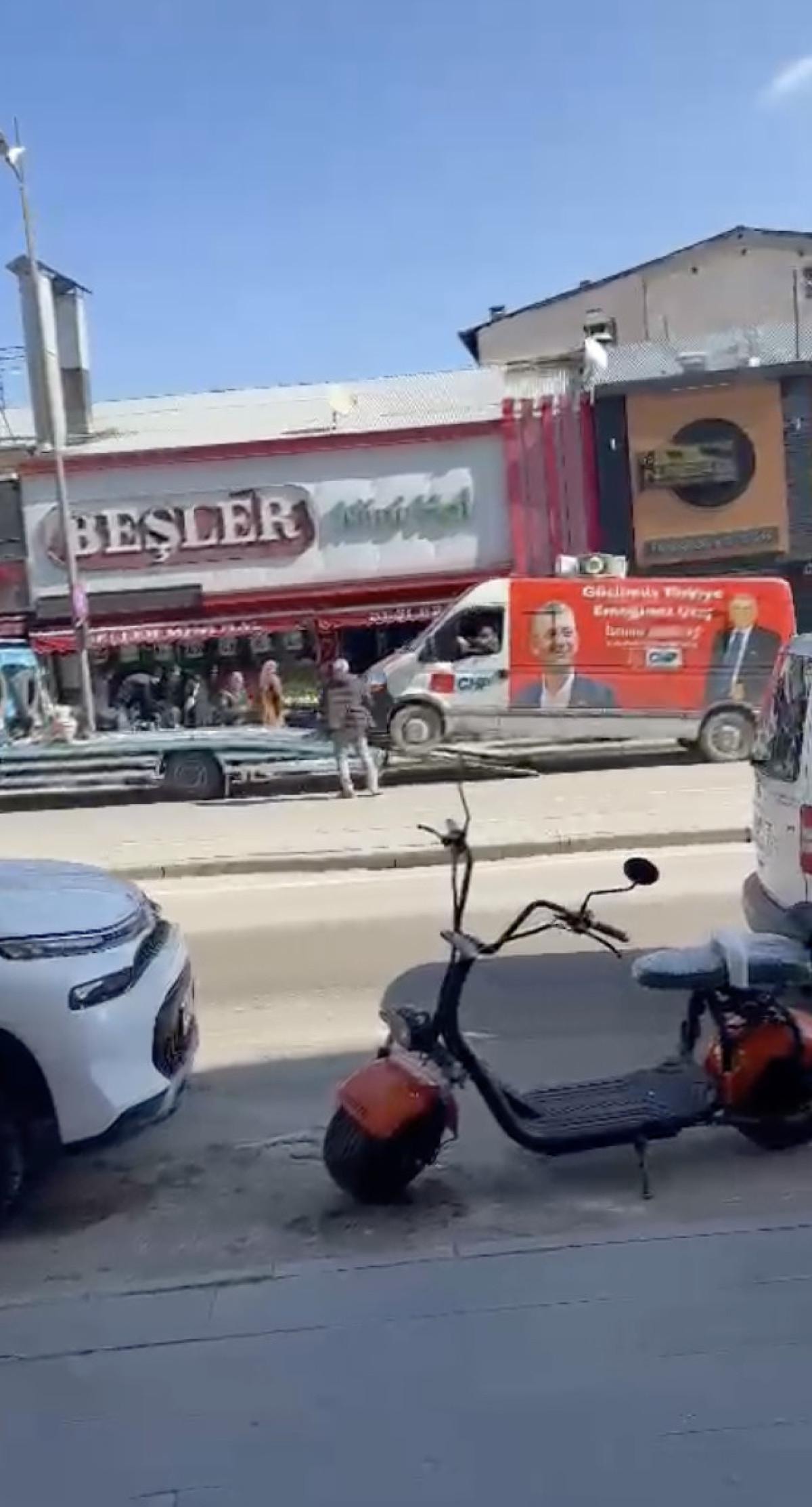 Trafik tamamen kilitlenmiş durumda. Polis geldi. CHP hizmeti böyle. İstanbul'da metrobüslerin ittirildiğini gördük şimdi kendi reklam aracını bile götürmekten acizler. Yazık." dedi.