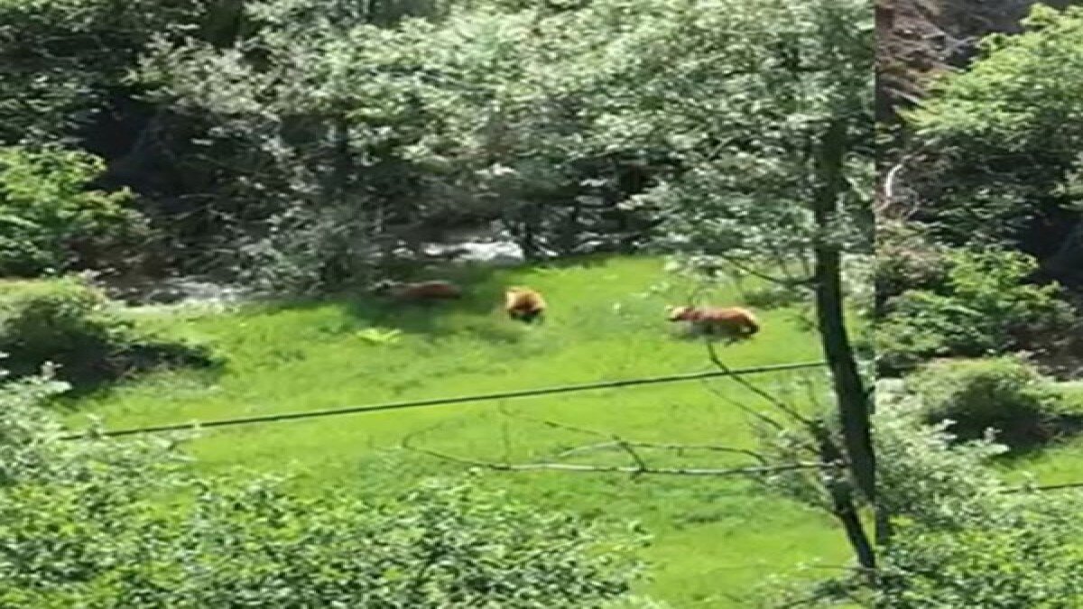 Bir süre yiyecek arayan ayılar, daha sonra bölgeden uzaklaştı.