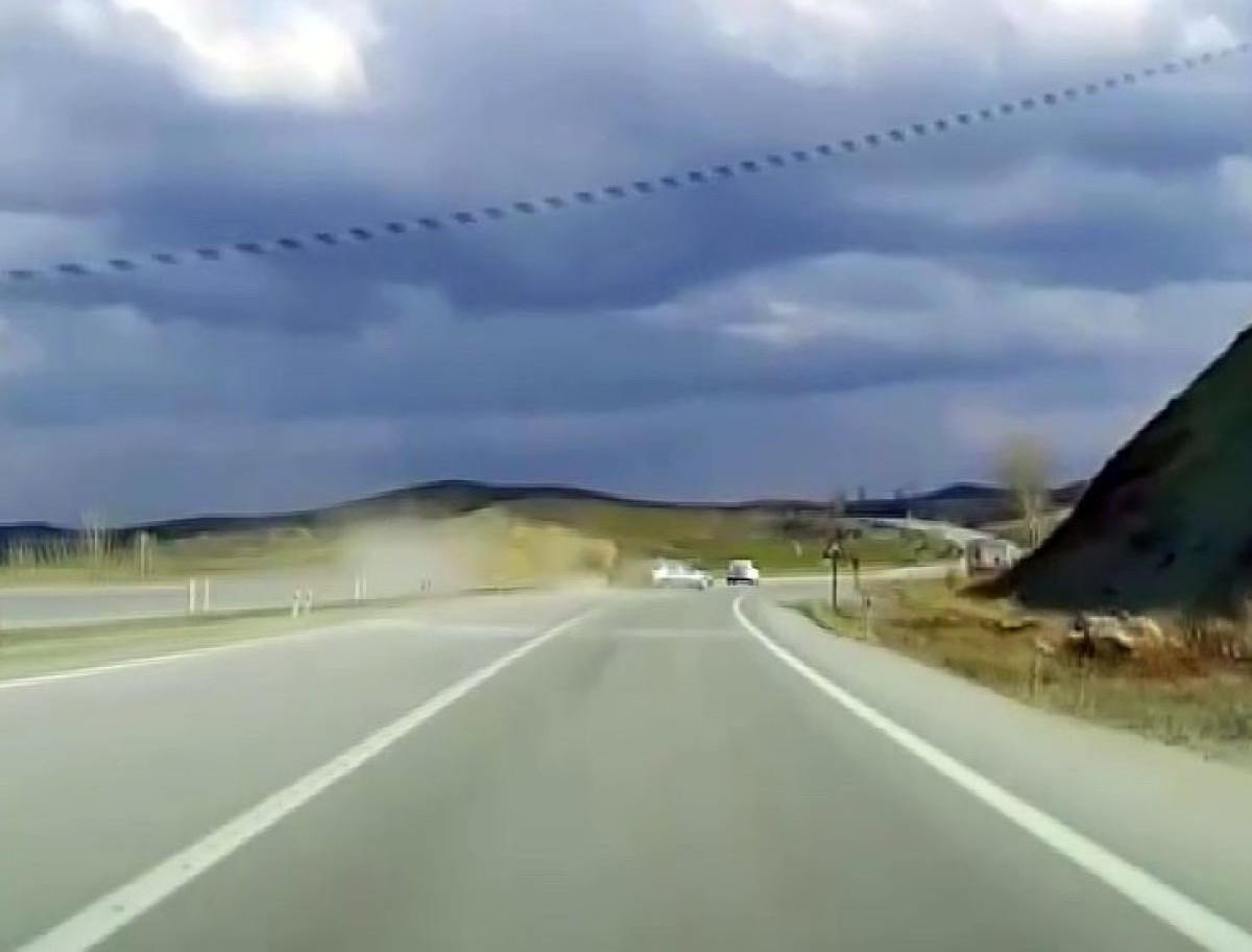 O anları, arkadan gelen başka bir aracın kamerası kaydetti.
