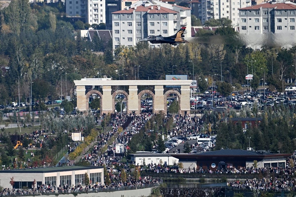 Kayseri 12. Hava Ulaştırma Ana Üs Komutanlığı'ndan havalanan SOLOTÜRK, Recep Tayyip Erdoğan Millet Bahçesi üzerinde gösteri uçuşu yaptı.