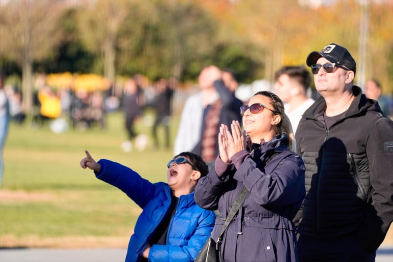 Prova uçuşunu izlemeye gelenler, SOLOTÜRK pilotunun F-16 savaş uçağıyla yaptığı akrobasi hareketlerini cep telefonlarıyla kaydetti.