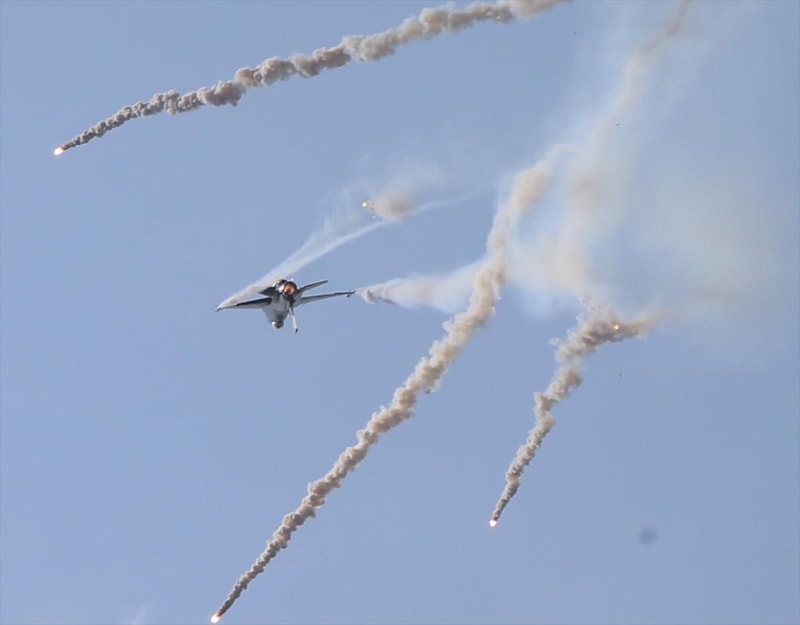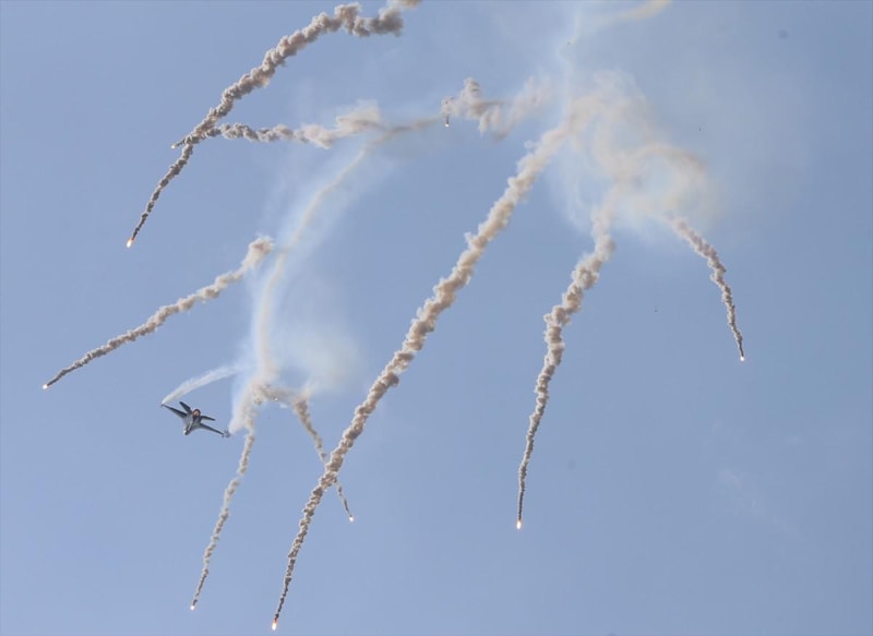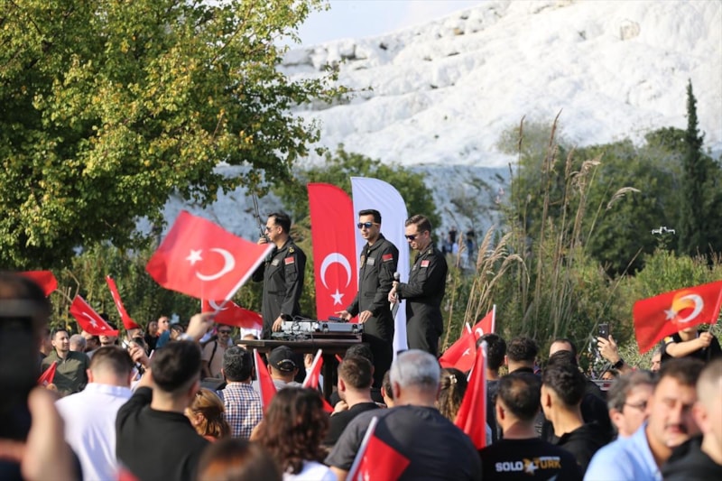Antalya Havalimanı'ndan havalanan Türk Hava Kuvvetleri'nin akrobasi timi SOLOTÜRK, kutlamalar kapsamında ören yeri çevresi ve travertenler üzerinde gösteri uçuşu yaptı.