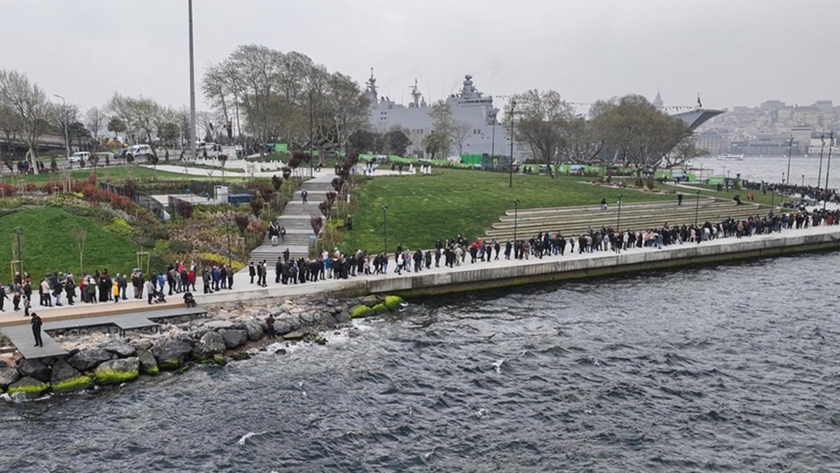 İlk andan itibaren yoğun ilgi gören TCG Anadolu, bayramda da büyük bir ziyaretçiyi ağırladı.