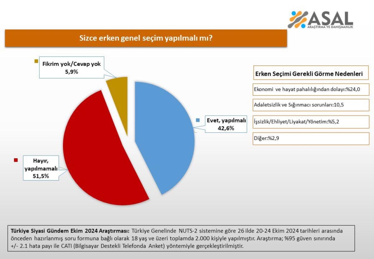 Ekim ayında 26 ilde 2 bin kişiyle yapılan ankette vatandaşlara "Sizce erken genel seçim yapılmalı mı?" sorusu yöneltildi.