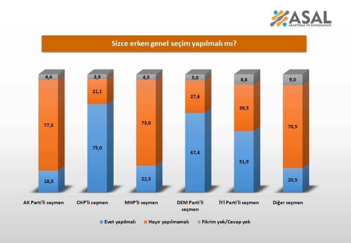 Erken seçimin yapılmasını isteyenlerin çoğunluğunu ise CHP ve DEM Partili seçmenler oluşturdu.