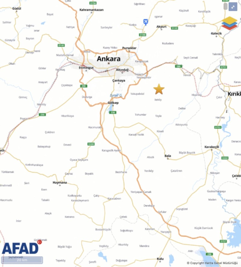 Afet ve Acil Durum Yönetimi (AFAD) Başkanlığı'nın internet sitesinde yer alan bilgiye göre, Ankara'da 09.36 sıralarında deprem yaşandı.