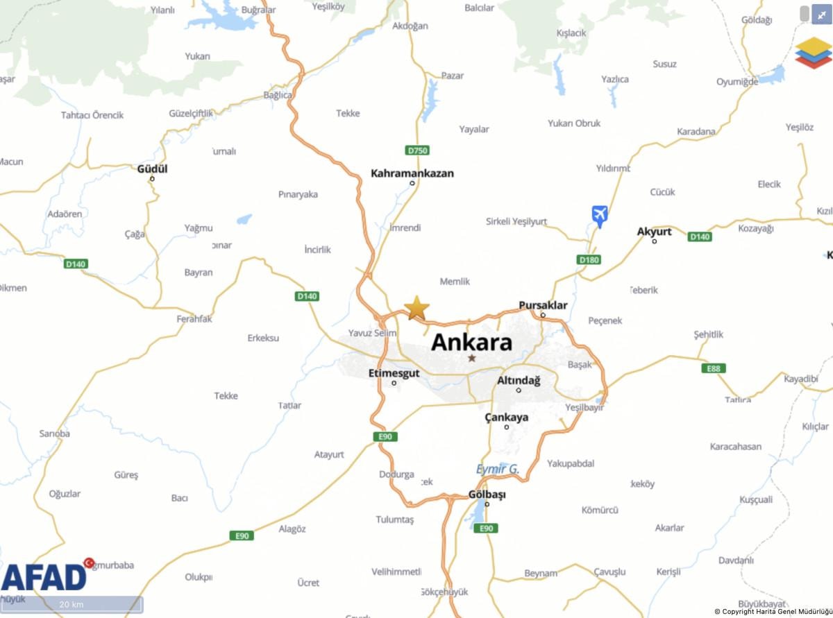 Ankara'da, saat 13.20'de 3.5 büyüklüğünde deprem meydana geldi.