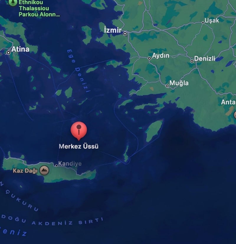 Deprem, Muğla'nın Datça ilçesine 166 kilometre mesafede kaydedilirken, İzmir ve çevre illerde de hissedildi.