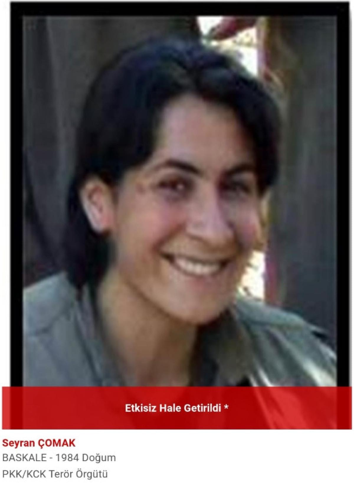 Ağrı ili Doğubayazıt kırsalında gerçekleştirilen operasyonda etkisiz hale getirilen teröristin İçişleri Bakanlığı Terörden Arananlar Listesinde KIRMIZI kategoride yer alan Bervar (K) adlı Seyran Çomak adlı teröristin;
