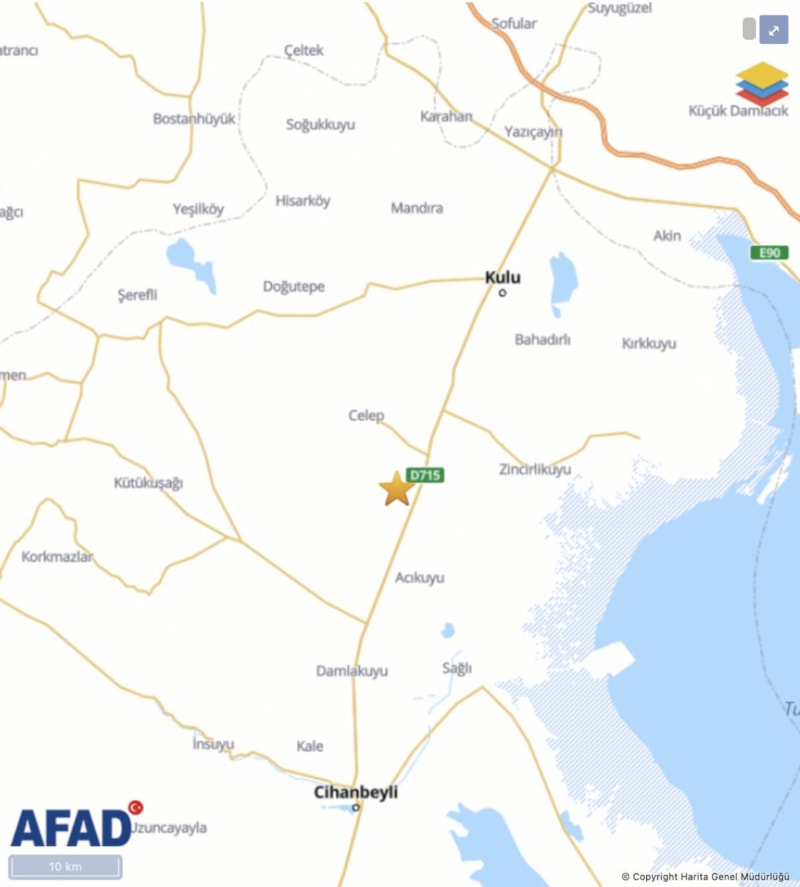 AFAD, Konya'nın Kulu ilçesinde 4.2 büyüklüğünde bir depremin meydana geldiğini duyurdu..