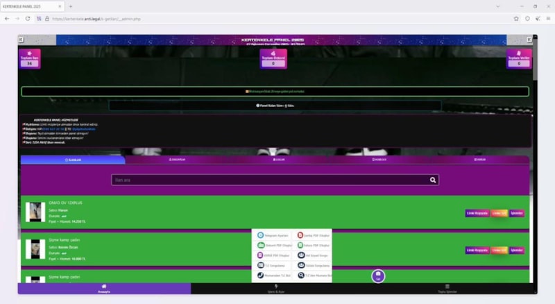 Ayrıca özel olarak geliştirilen yazılımlar aracılığıyla e-ticaret platformlarına otomatik sahte ilanlar yüklendiği; bu ilanlar üzerinden mağdurlara sahte dekont ve fatura gibi belgeler düzenlenerek güven duygusu oluşturulduğu ve vatandaşların bu yolla dolandırıldığı tespit edildi.