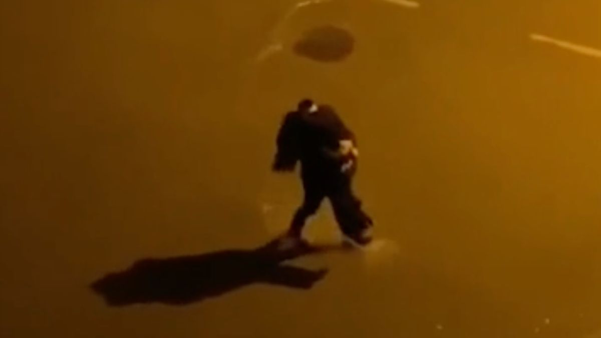 Erkek arkadaşın sevgilisini taşıyarak karşıya geçirdiği anları kayda alan kullanıcı, bu anları hesabından paylaştı.