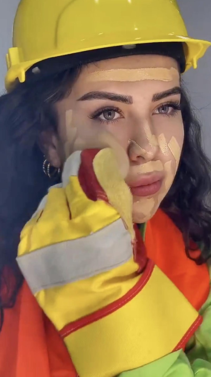 "Yangını söndürmek için güzel bir makyaj yapalım" diyen kadın, "Binanın içi yangın nedeniyle sıcak olacak. Bu yüzden makyajımı sabitliyorum.