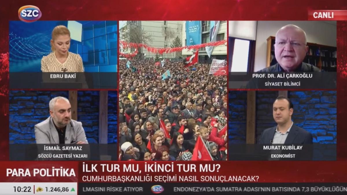 "Ben böyle bir dip dalgayı 1 Mayıs 1950 yılında Anadolu’da dolaşıyor olsaydık, herhalde görürdük. Ama şu anda öyle bir dip dalgayı nerede dolaşırsanız dolaşın, bayramda Anadolu’daydım öyle bir dip dalganın seçmeni hareketlendirdiğini açıkçası hissetmedi. Kampanya yeterince dinamik değil, insanları sokağa dökemiyor. Bu yeni bir seçim artık internet çağındayız bu iş artık WhatsApp Facebook üzerinden yürüyor. Bu argümanları ben de duyuyorum, böyle bir heyecan olmadığı takdirde seçim günü sahada büyük bir fark görmeyebiliriz, buna hazırlıklı olmak lazım. Bu kadar gizli bir destek var ve biz bunu hiçbir şekilde görmüyoruz, değişik çalışmalarda farklı sonuçlar geliyor fakat AK Parti’nin DSP gibi bir çöküş içerisinde olduğunu gösteren bir sonuç ben görmüyorum. Oysa DSP 2022 yılında yüzde 20’yi aşkın oydan yüzde 2’nin altına düştü. Şu anda benzer bir iktisadi kriz içerisinde yaşıyoruz, bu iktisadi krize o dönemde olmadığı kadar sorun da eklenmiş durumda. Buna rağmen böyle bir çöküş görmüyoruz, AK Parti'nin destek tabanı bir çöküş içerisinde gözükmüyor şu an itibarıyla."
