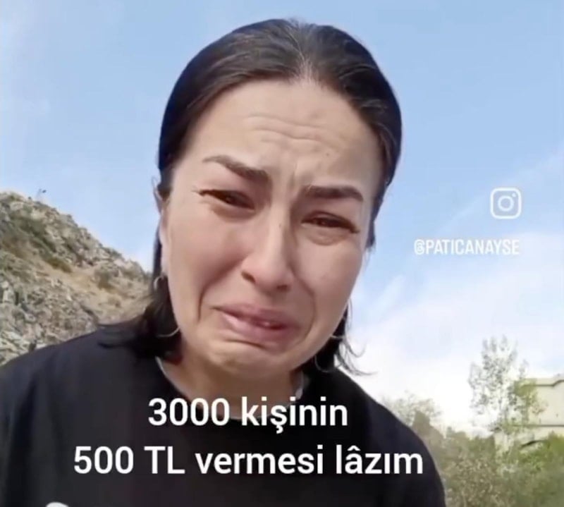 Sosyal medya üzerinden sözde hayvansever olduğunu belirten Ayşe Gülşen isimli kişi, yayın açarak yardım toplamaya çalıştı.