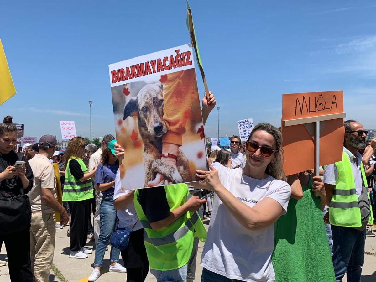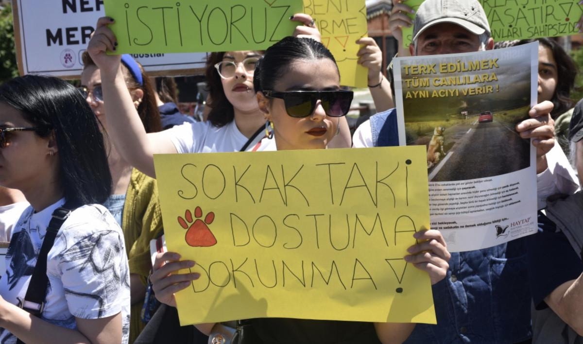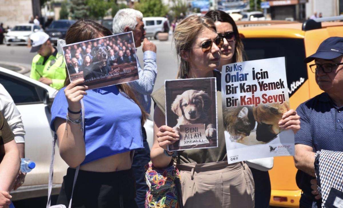 Hayvanseverler ayrıca ellerinde 'Sokaktaki dostuma dokunma', 'Önce bizleri öldürmeniz gerekir', 'Katliam çözüm değil' yazılı dövizler taşıdı.