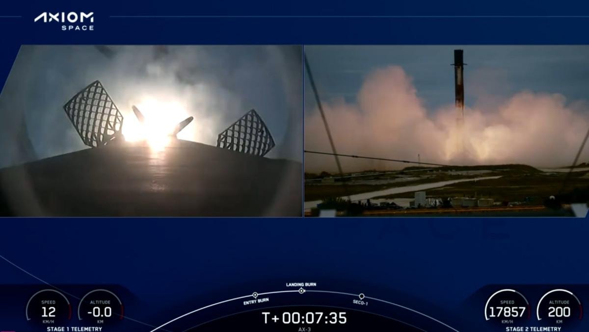 Falcon 9 roketi, Ax-3 ekibini taşıyan Dragon kapsülünü belirlenen yüksekliğe çıkardıktan sonra başarılı bir şekilde kapsülden ayrıldı.
